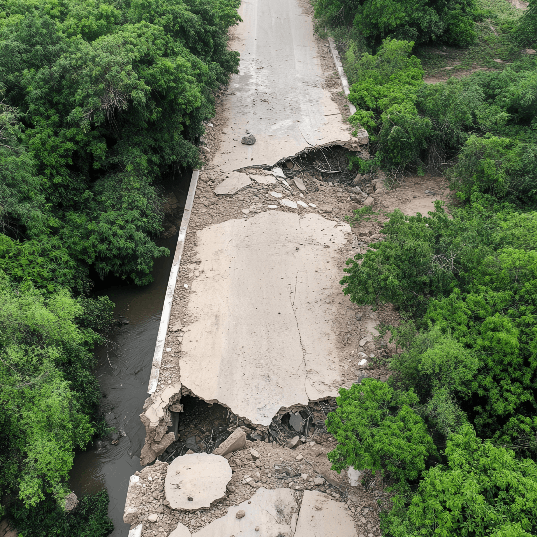 • 교량 및 도로 단절: 교각 침하, 도로 함몰로 교통망 붕괴