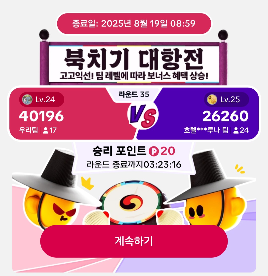 TikTok Lite에서 북치기 대항전에 참여해서 포인트를 쟁취하세요! 대항전은 매 4시간 마다 시작됩니